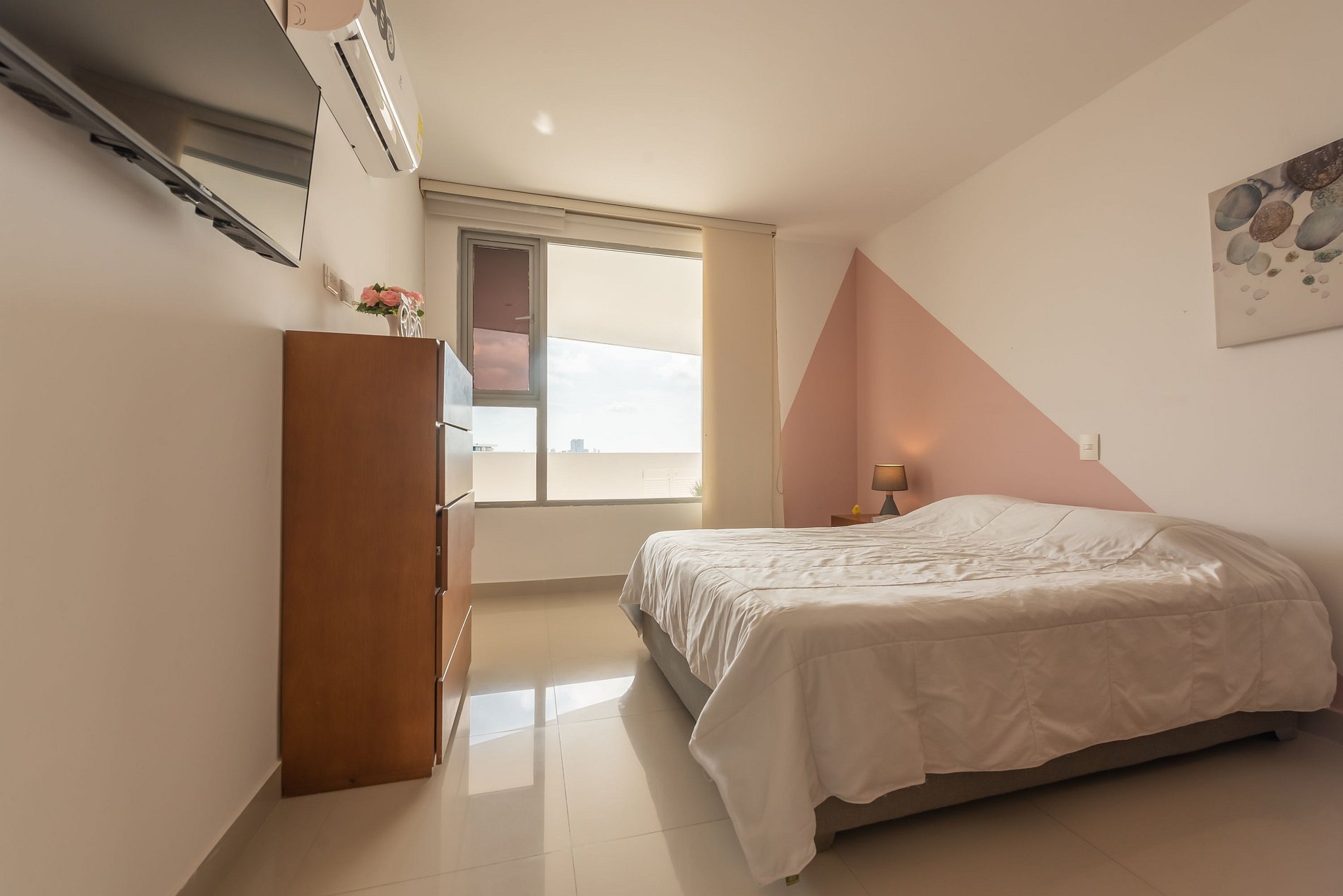 Amplio apartamento de 2 cuartos, 2 baños, sala-comedor, cocina, área de labores y balcón, ubicado frente a las playas de Marbella, a 5 min en taxi desde el aeropuerto y desde la ciudad amurallada (8 cuadras).