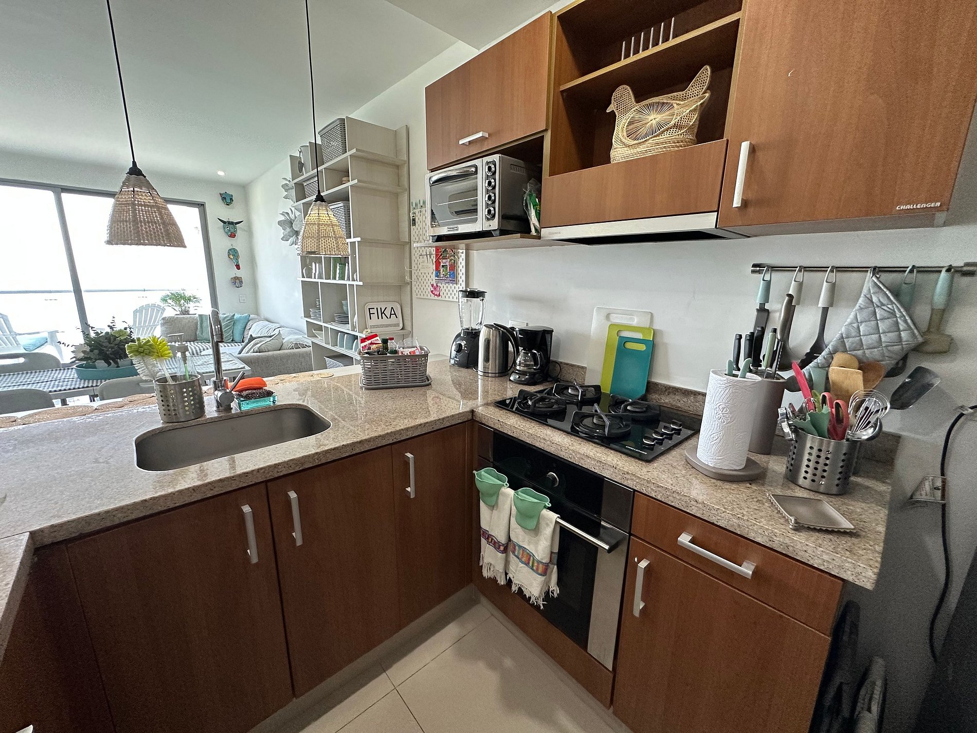 La cocina se entrega con utensilios de cocina, cafetera, licuadora, horno electrico, etc.
