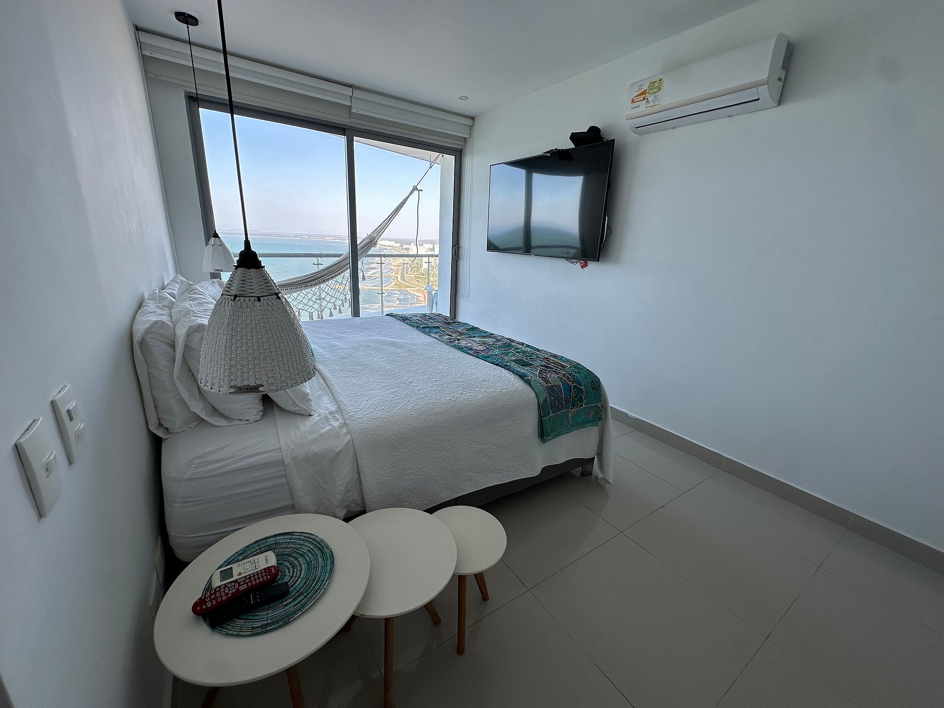 Costa de dos alcobas. La alcoba principal tiene vista directa al mar, y tiene cama king, aire acondicionado, televisión, walking closet y baño en suite. La segunda alcoba tiene dos camas doble, closet, televisión y aire acondicionado.