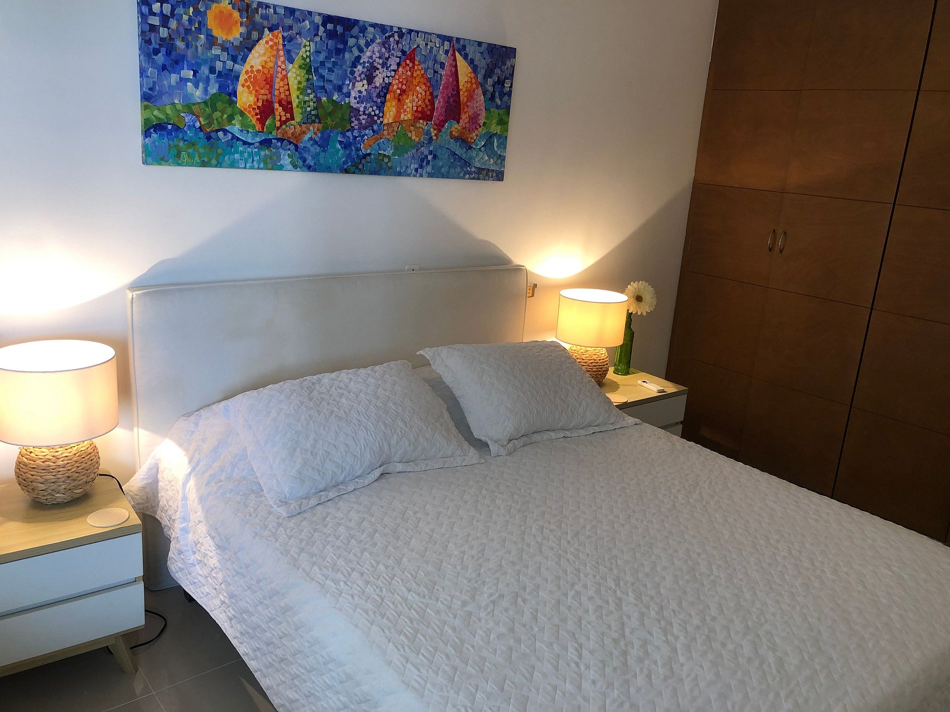 Consta de dos alcobas. La alcoba principal tiene vista directa al mar, y tiene cama king, aire acondicionado, televisión, walking closet y baño en suite. La segunda alcoba tiene una cama doble, closet y aire acondicionado.
