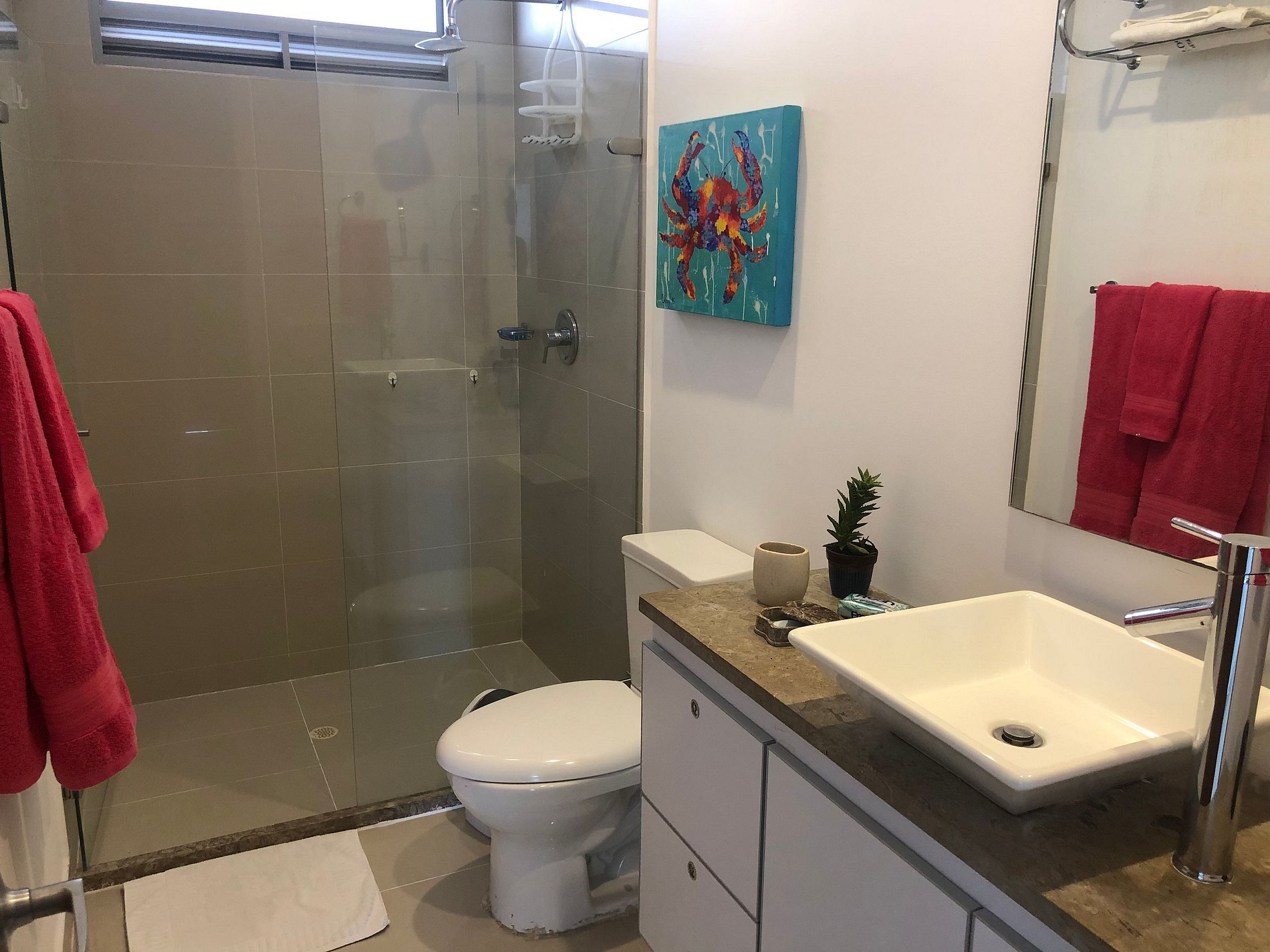 Ambos baños son completos con regadera con agua caliente. El baño principal tiene vista al mar.