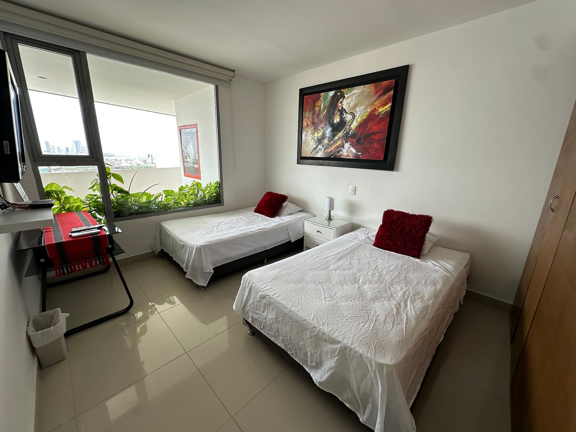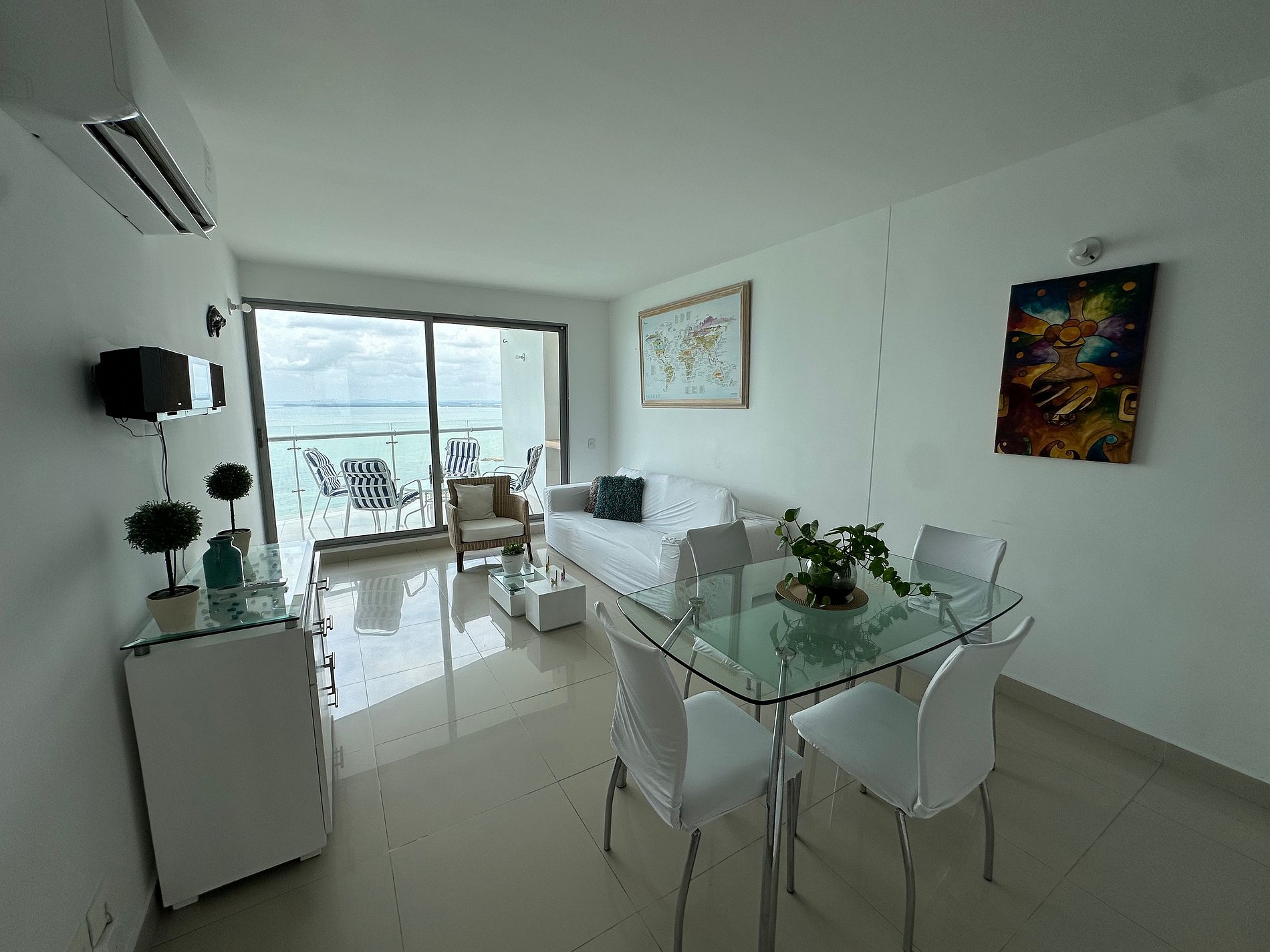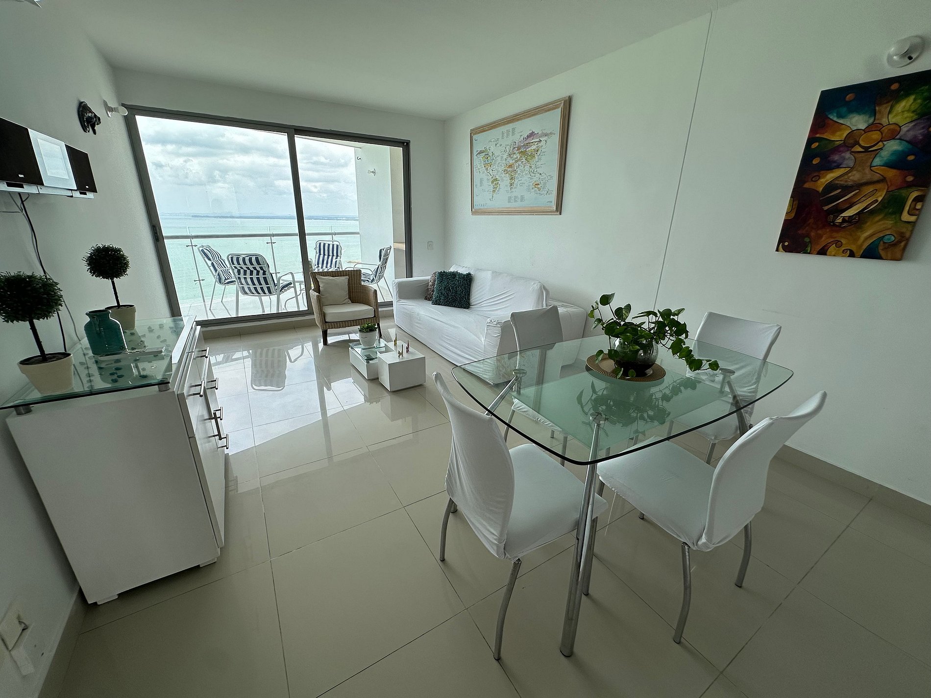 Amplio apartamento de 2 cuartos, 2 baños, sala-comedor, cocina, área de labores y balcón, ubicado frente a las playas de Marbella, a 5 min en taxi desde el aeropuerto y desde la ciudad amurallada (8 cuadras).