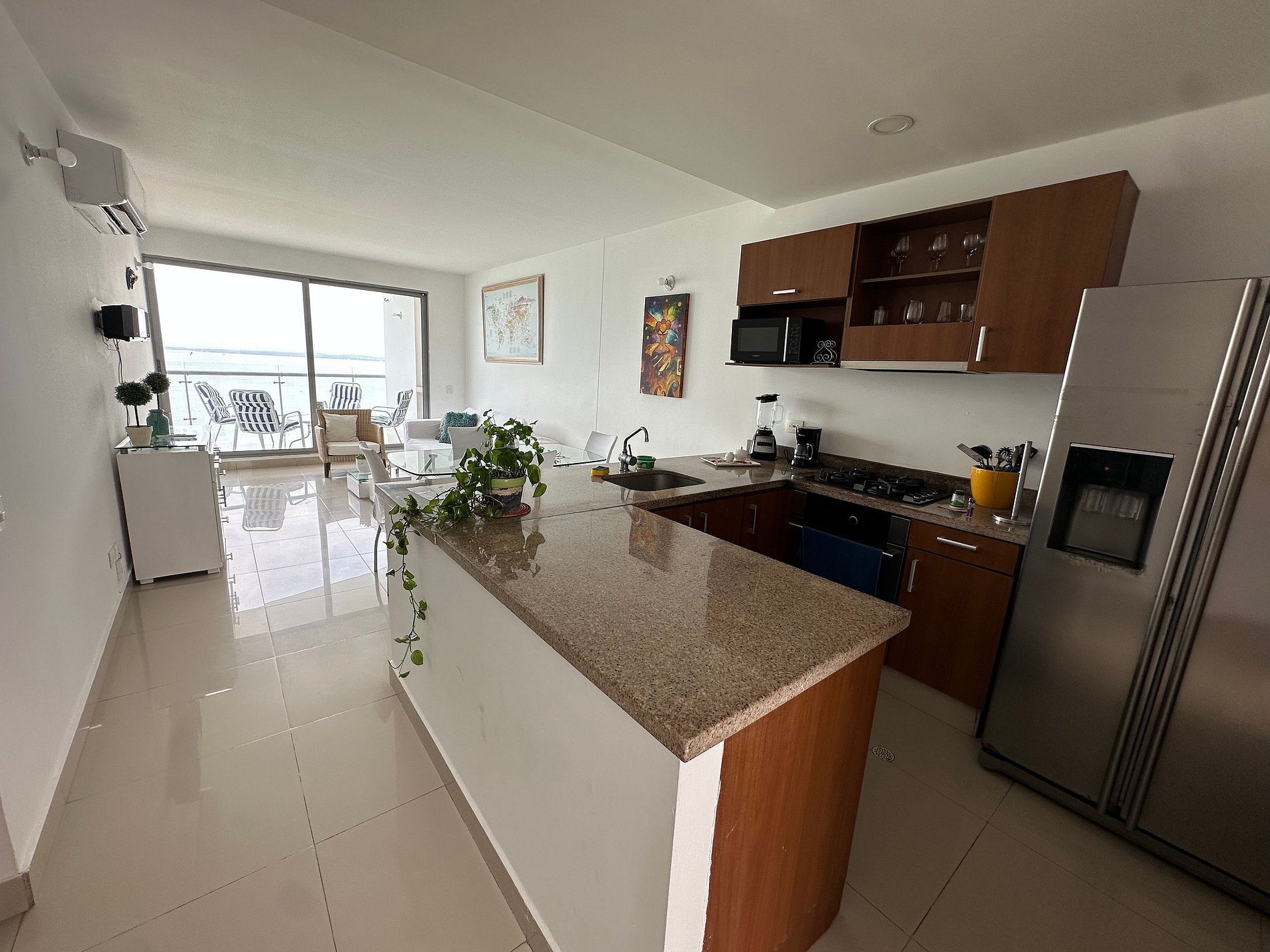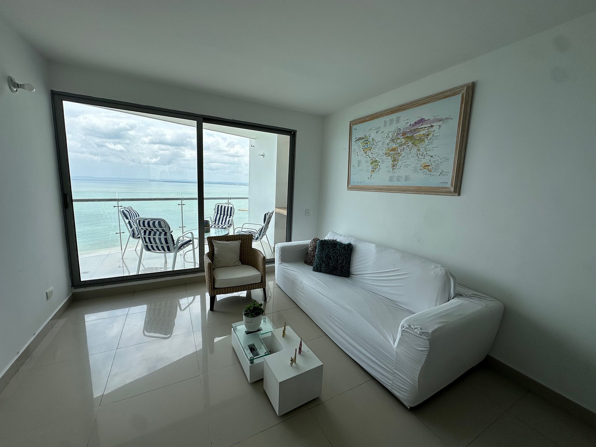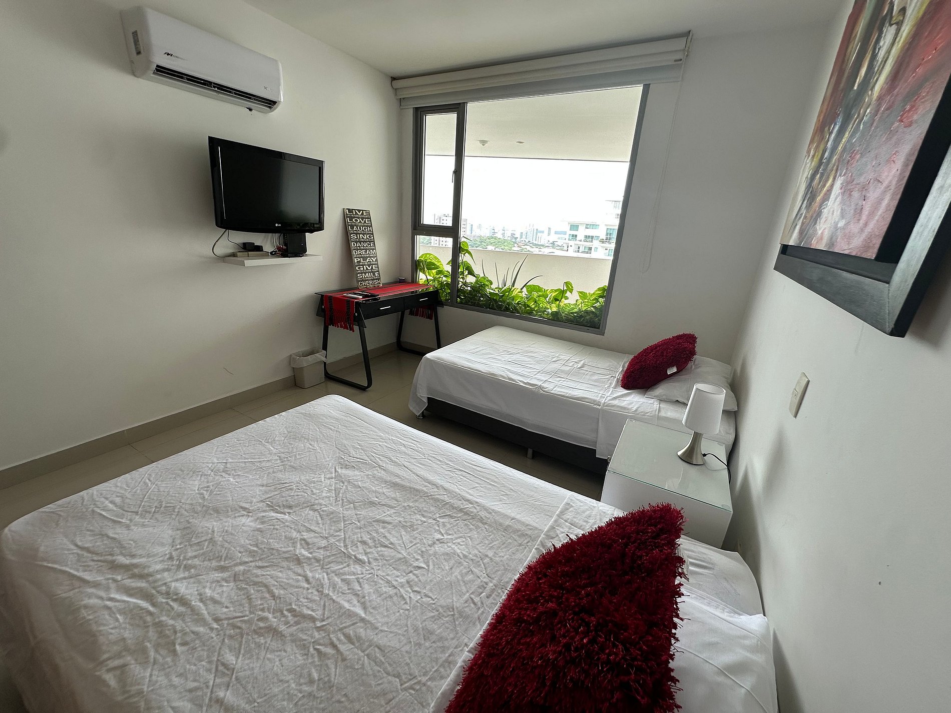 Amplio apartamento de 2 cuartos, 2 baños, sala-comedor, cocina, área de labores y balcón, ubicado frente a las playas de Marbella, a 5 min en taxi desde el aeropuerto y desde la ciudad amurallada (8 cuadras).