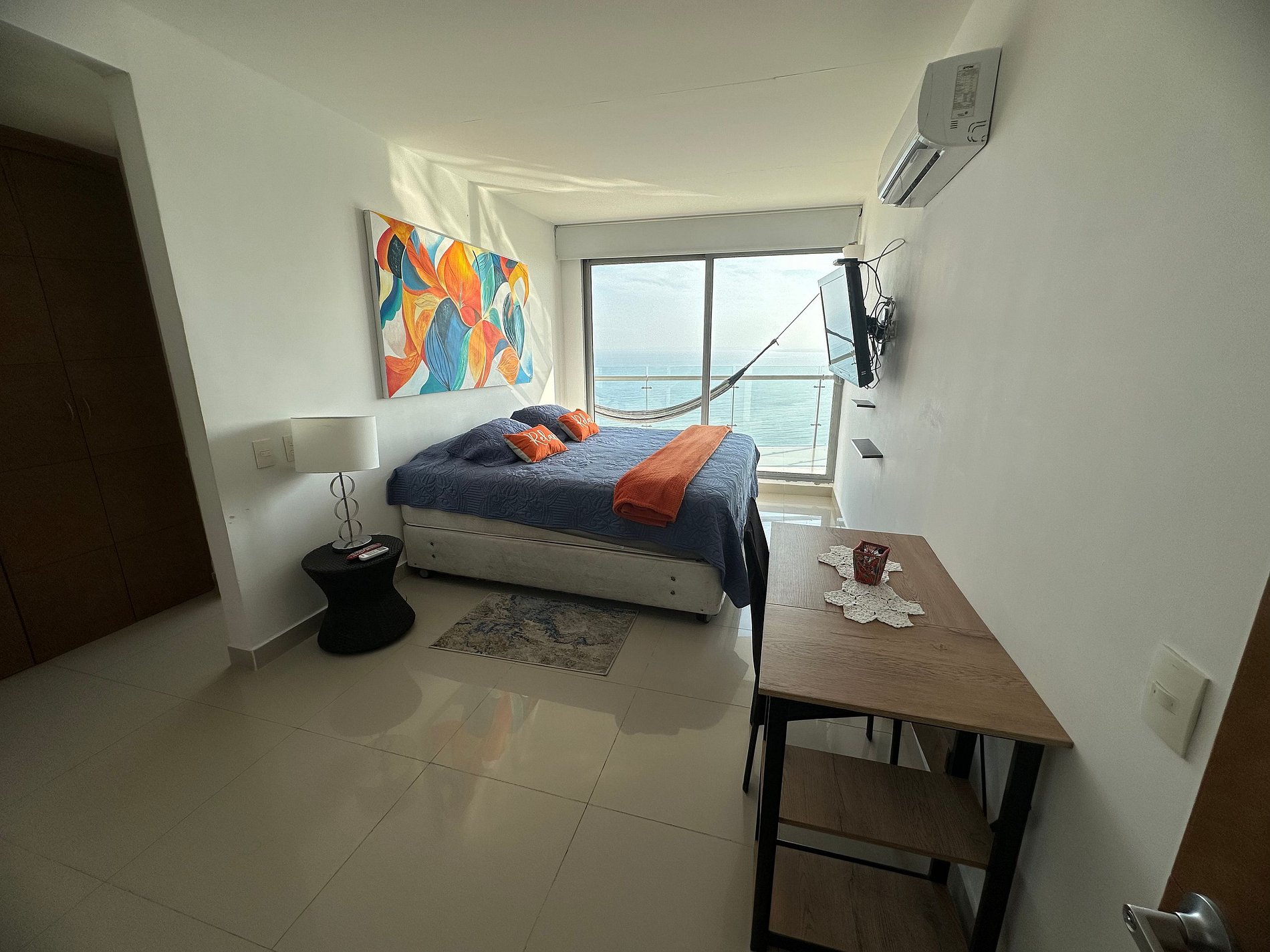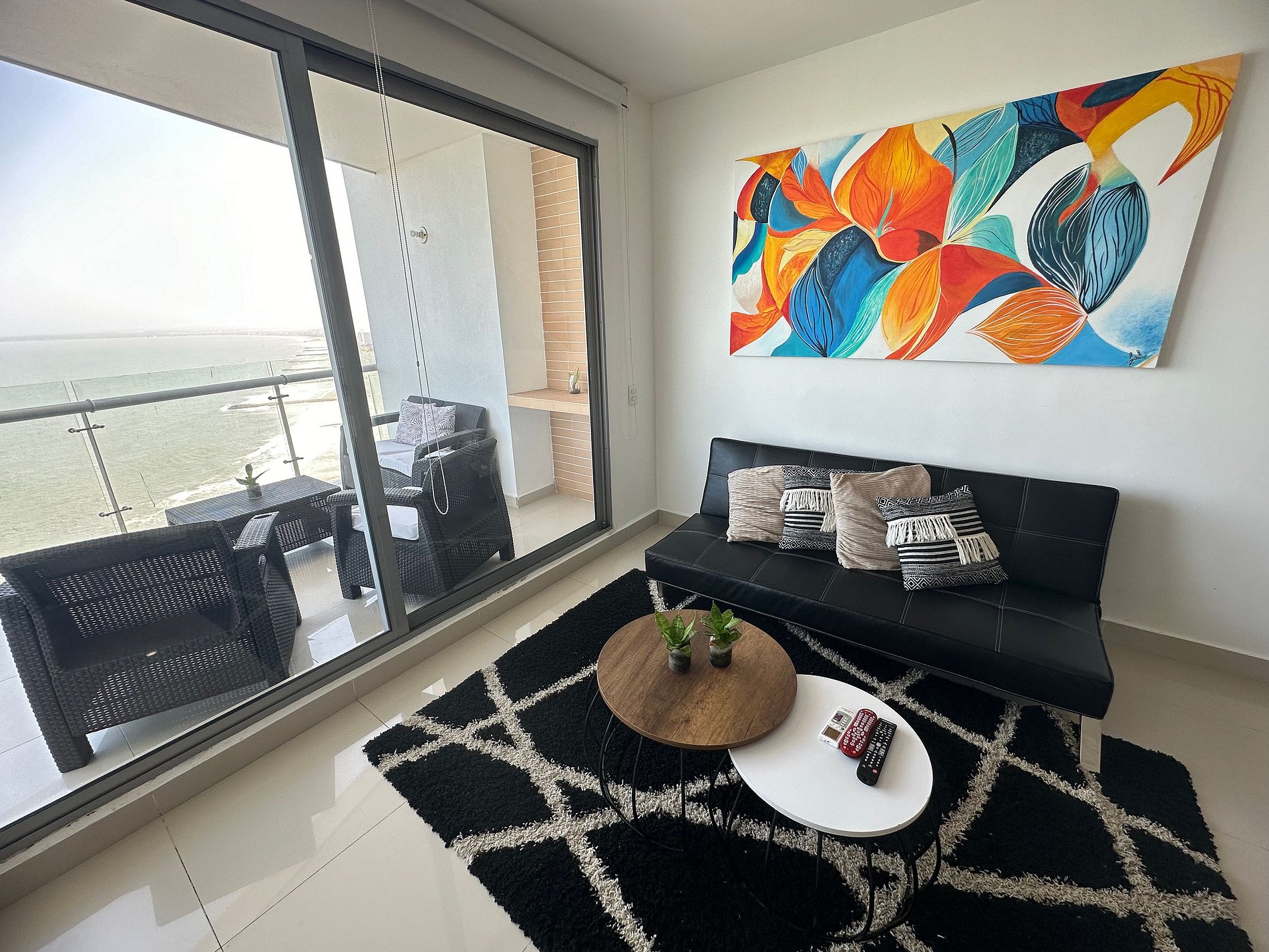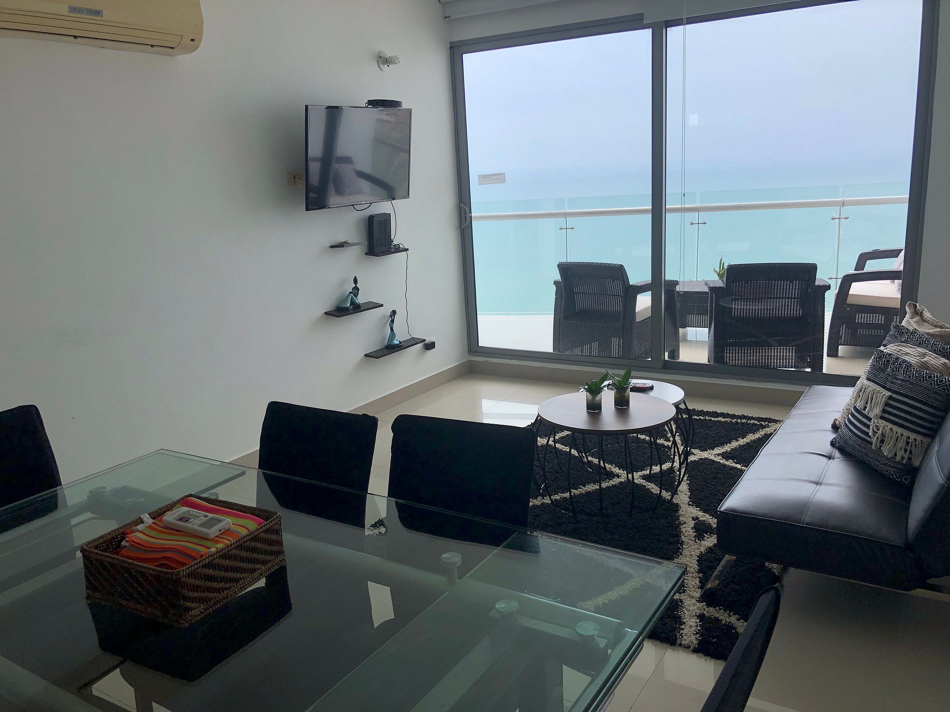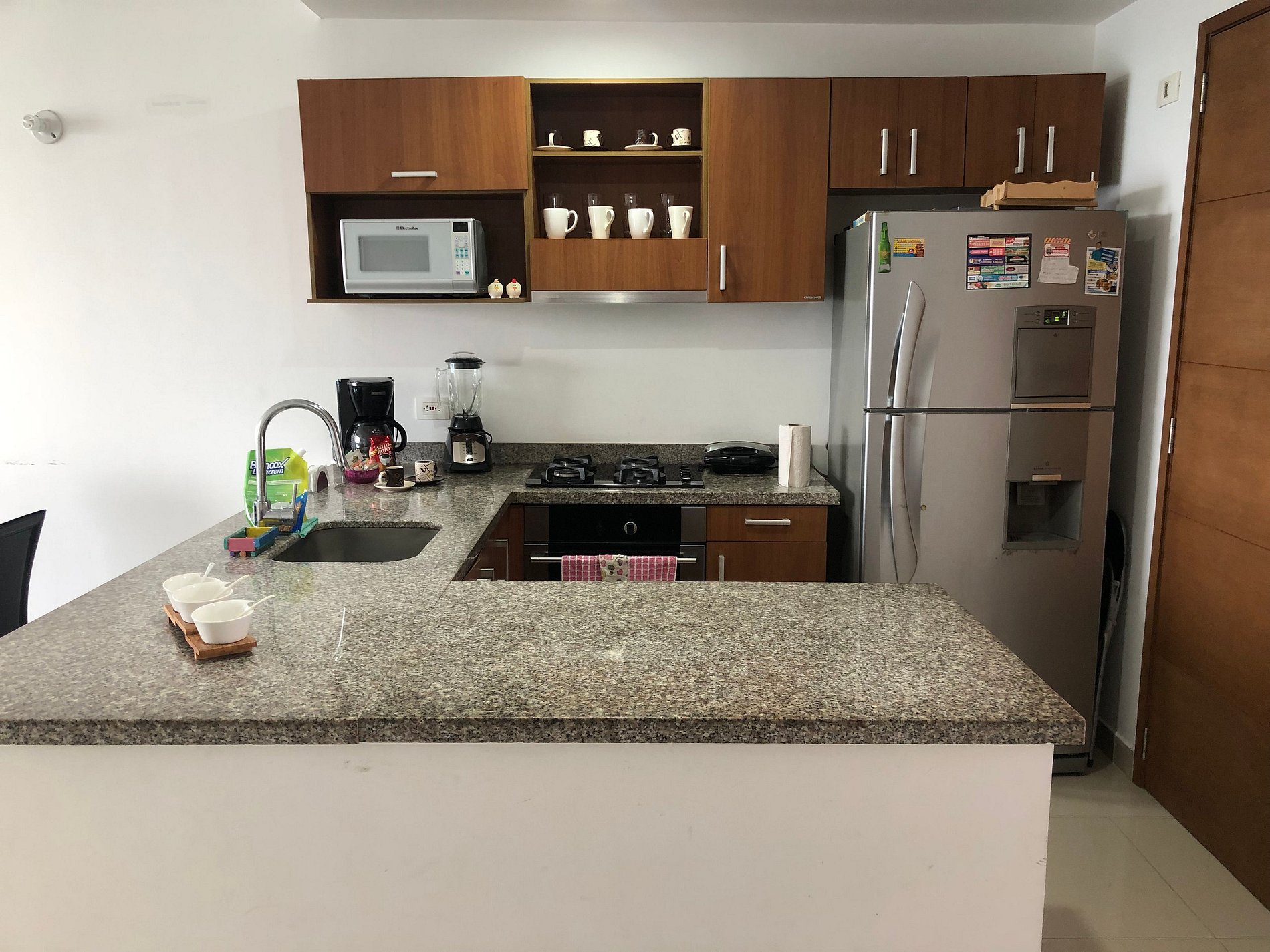 Amplio apartamento de 2 cuartos, 2 baños, sala-comedor, cocina, área de labores y balcón, ubicado frente a las playas de Marbella, a 5 min en taxi desde el aeropuerto y desde la ciudad amurallada (8 cuadras).