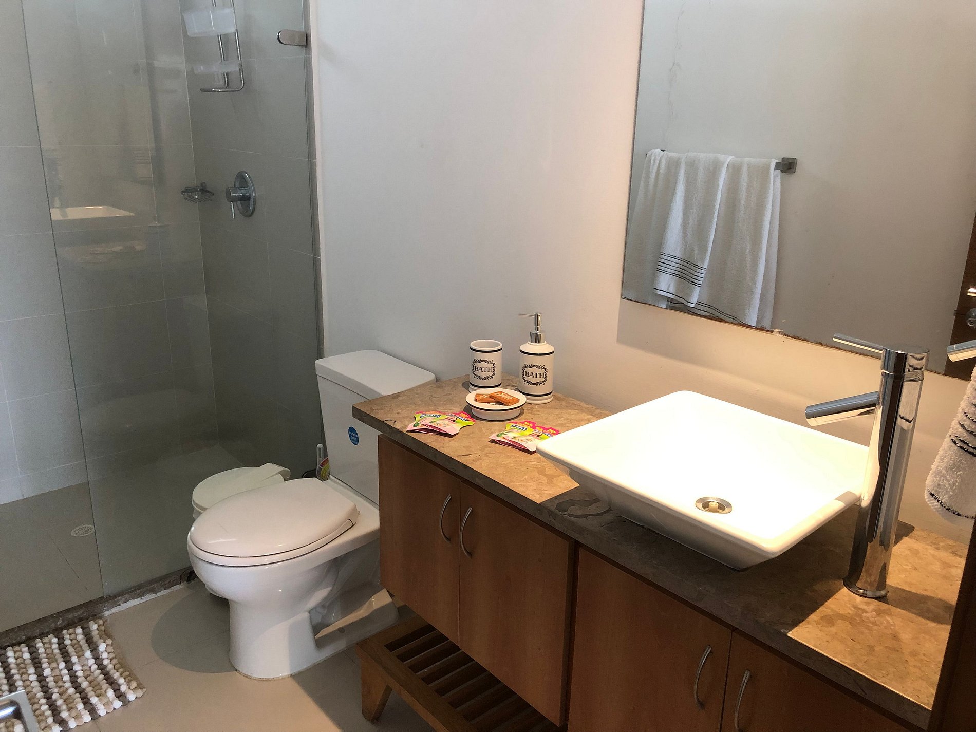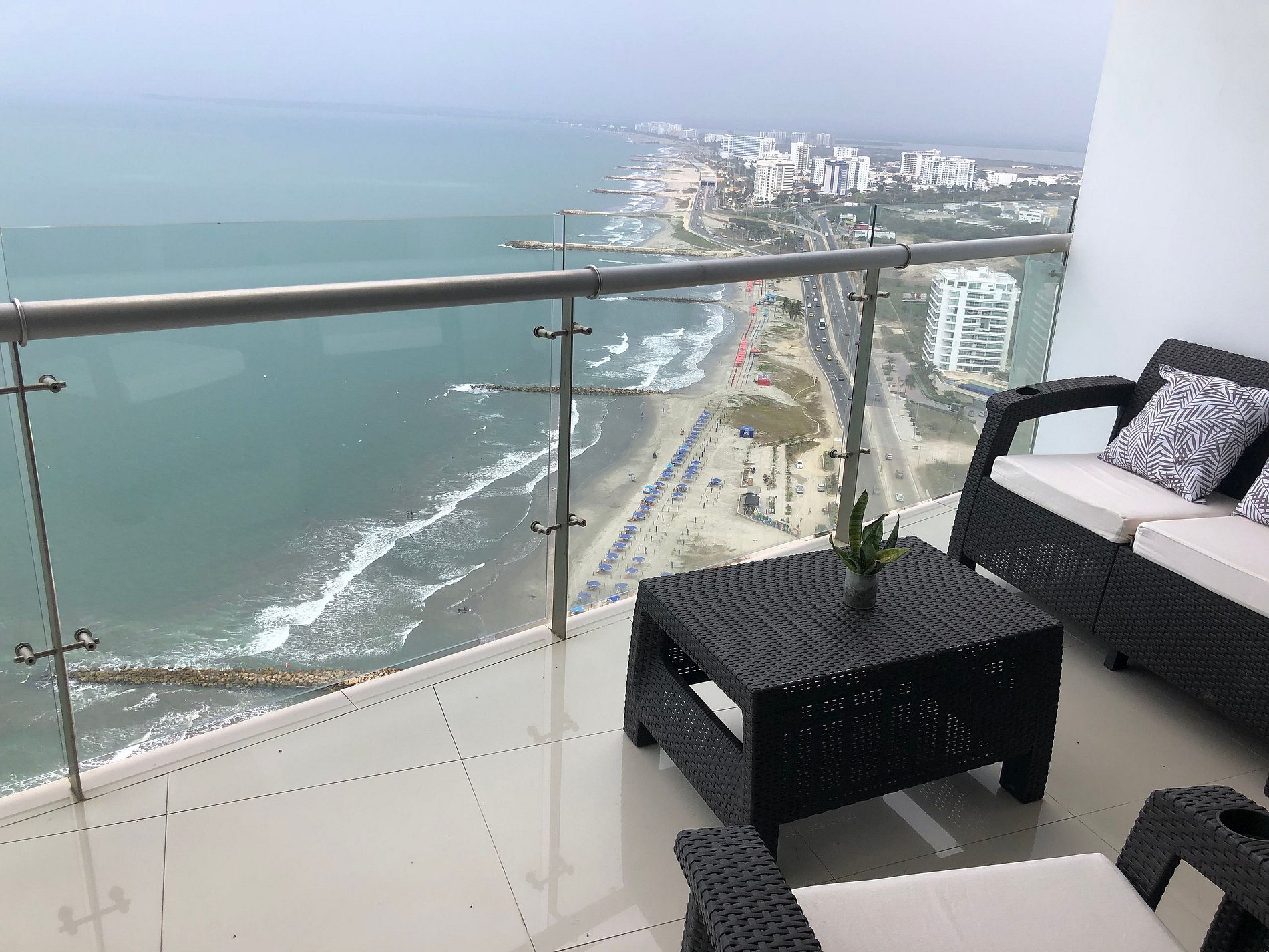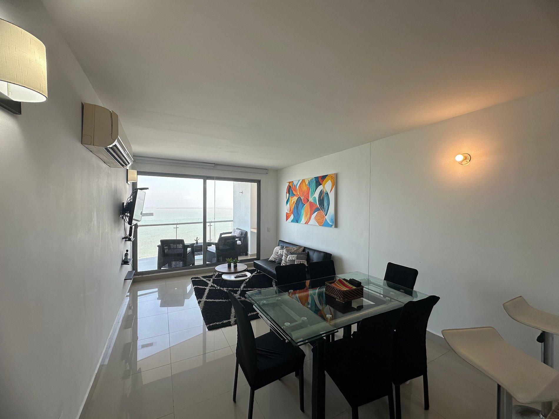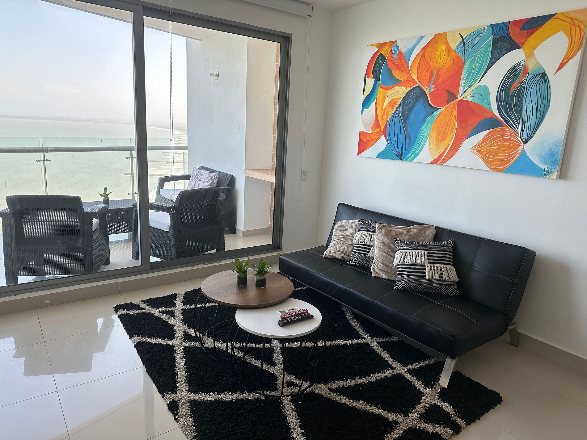 Amplio apartamento de 2 cuartos, 2 baños, sala-comedor, cocina, área de labores y balcón, ubicado frente a las playas de Marbella, a 5 min en taxi desde el aeropuerto y desde la ciudad amurallada (8 cuadras).