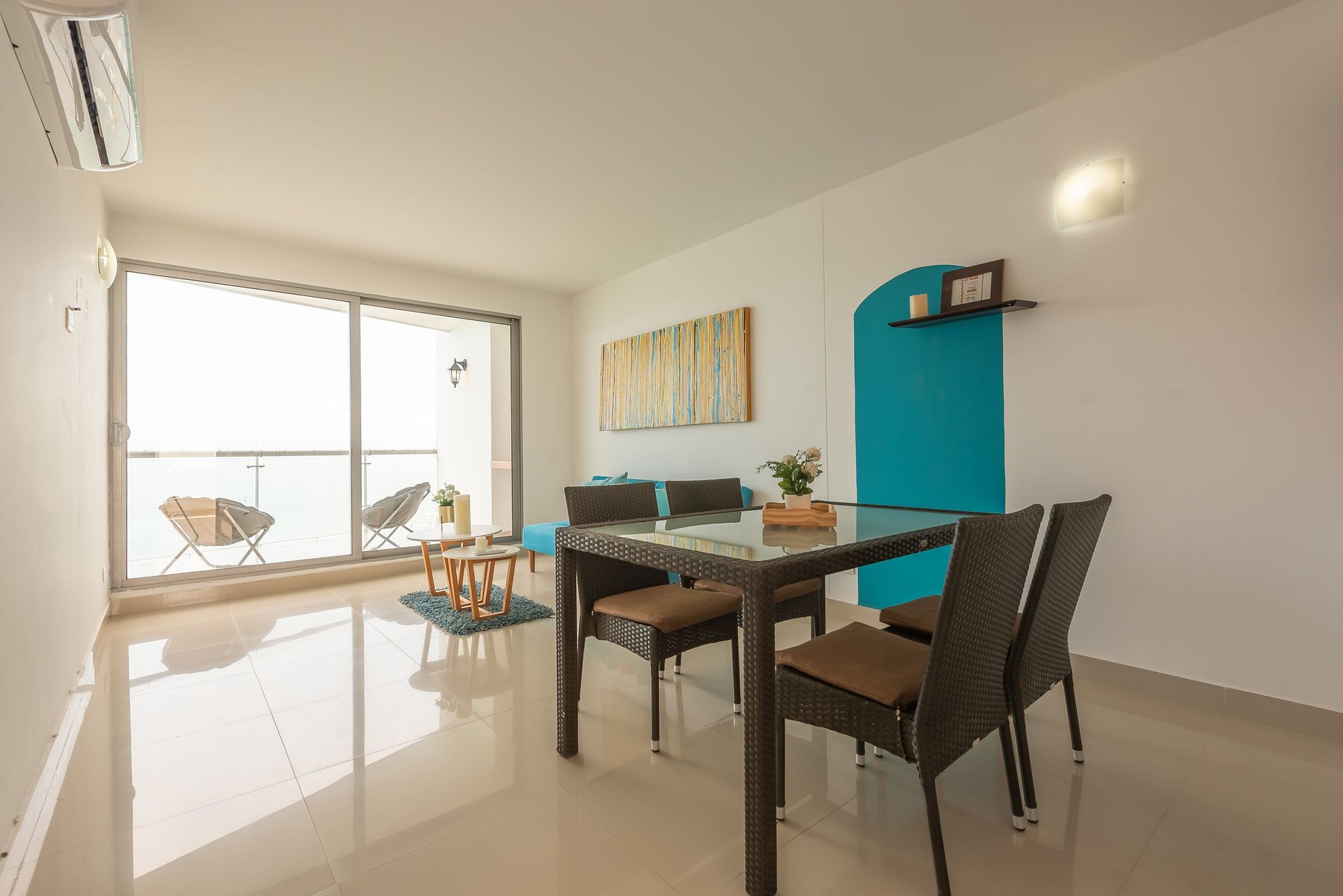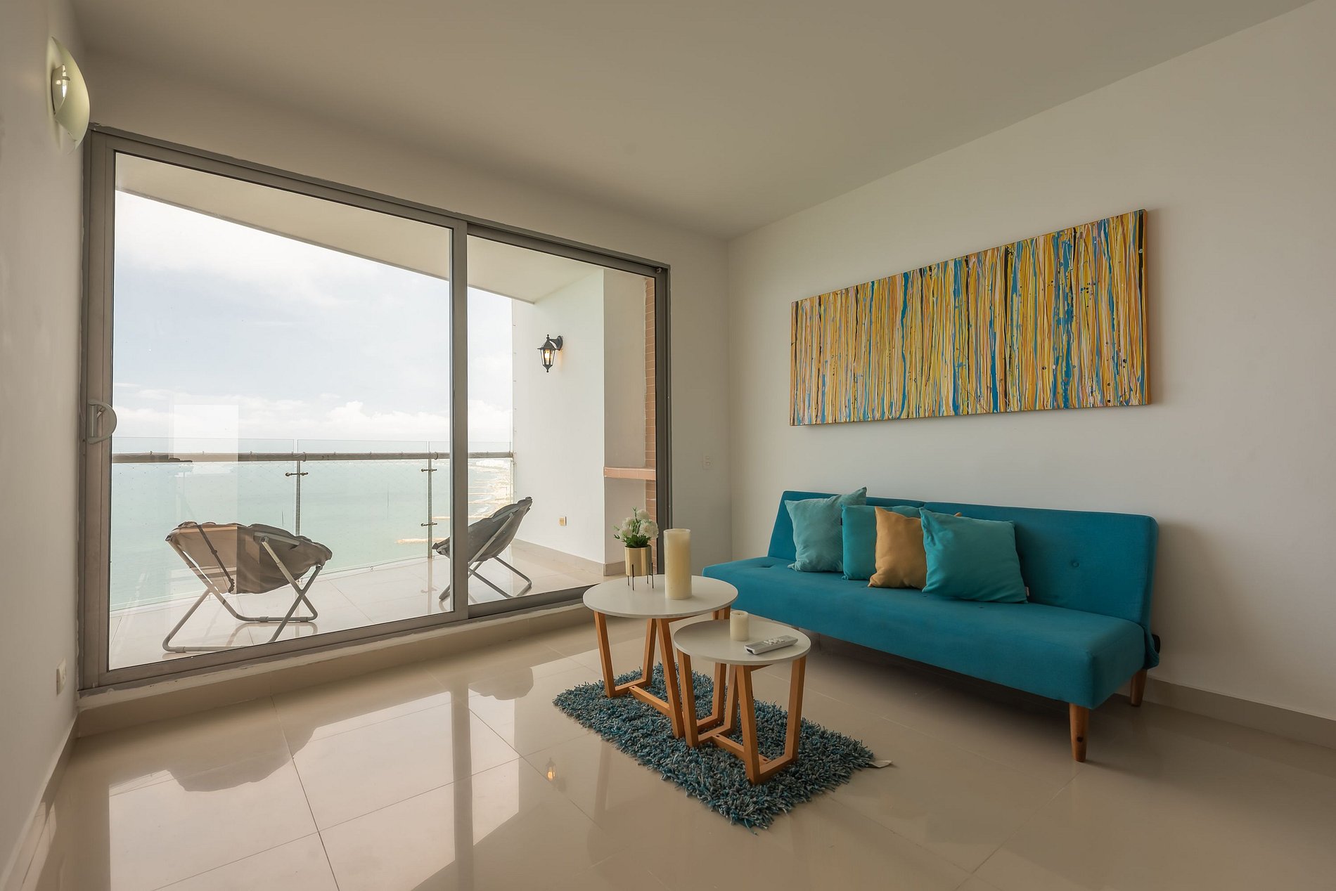 Amplio apartamento de 2 cuartos, 2 baños, sala-comedor, cocina, área de labores y balcón, ubicado frente a las playas de Marbella, a 5 min en taxi desde el aeropuerto y desde la ciudad amurallada (8 cuadras).
