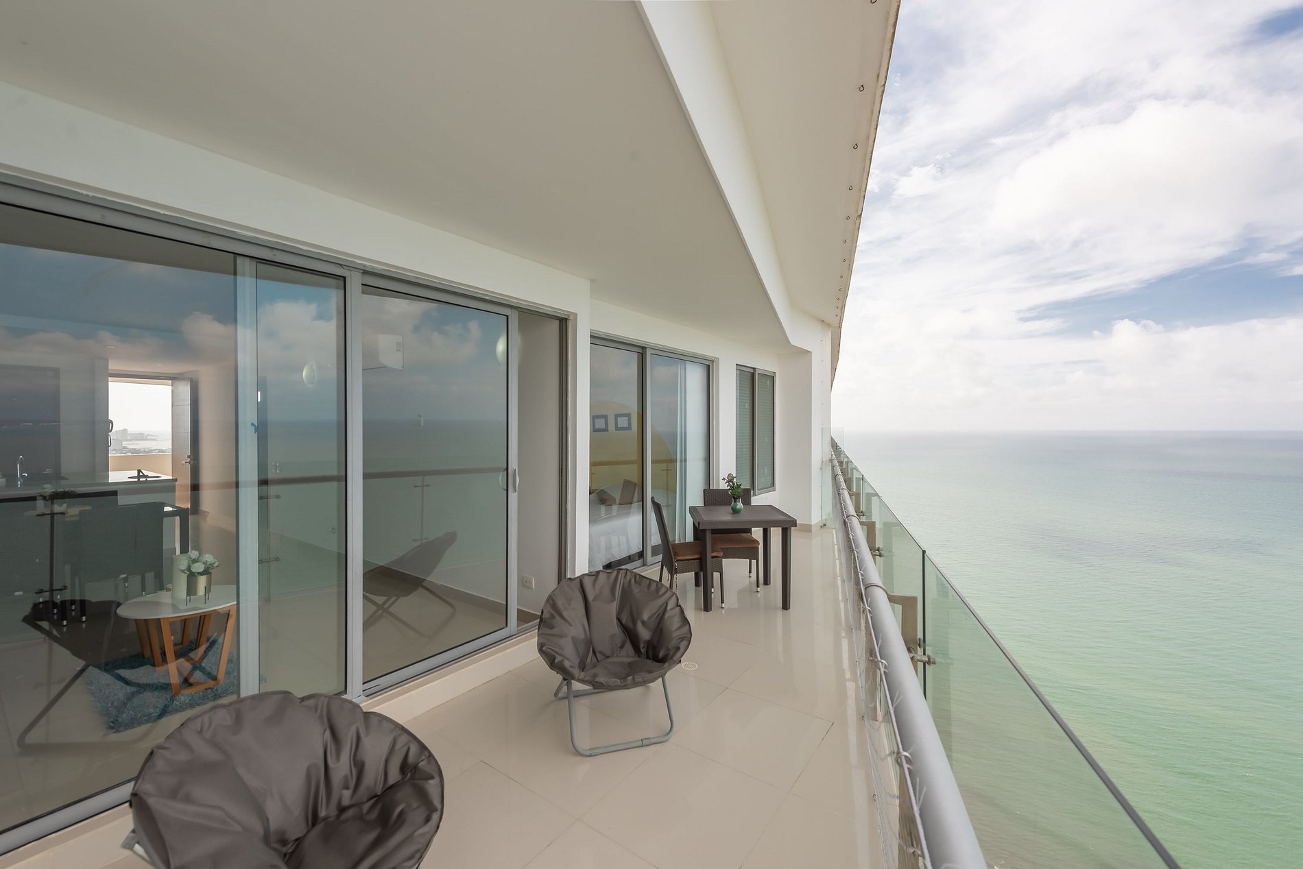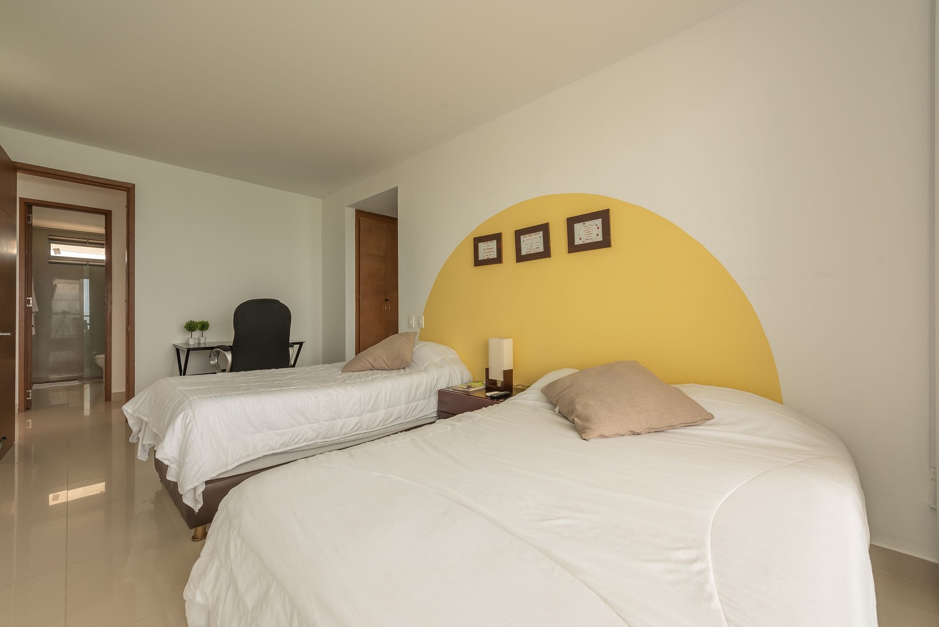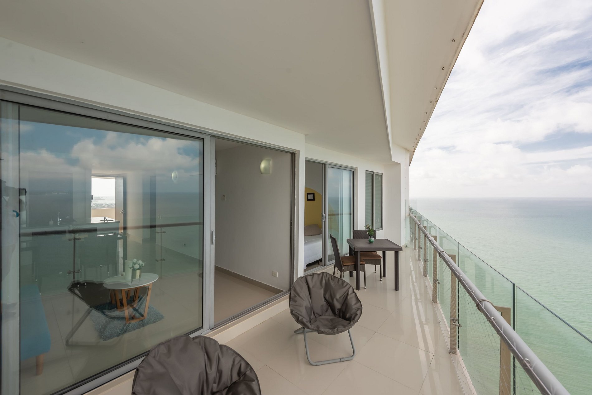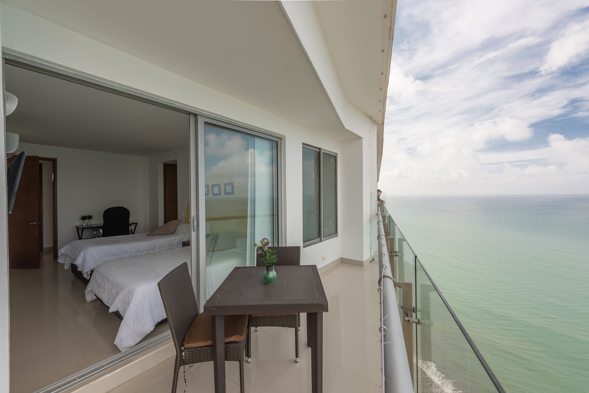 Amplio apartamento de 2 cuartos, 2 baños, sala-comedor, cocina, área de labores y balcón, ubicado frente a las playas de Marbella, a 5 min en taxi desde el aeropuerto y desde la ciudad amurallada (8 cuadras).