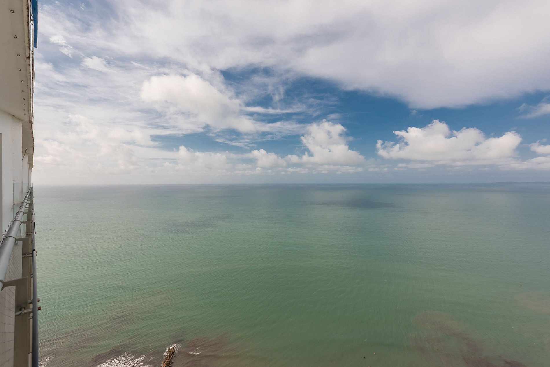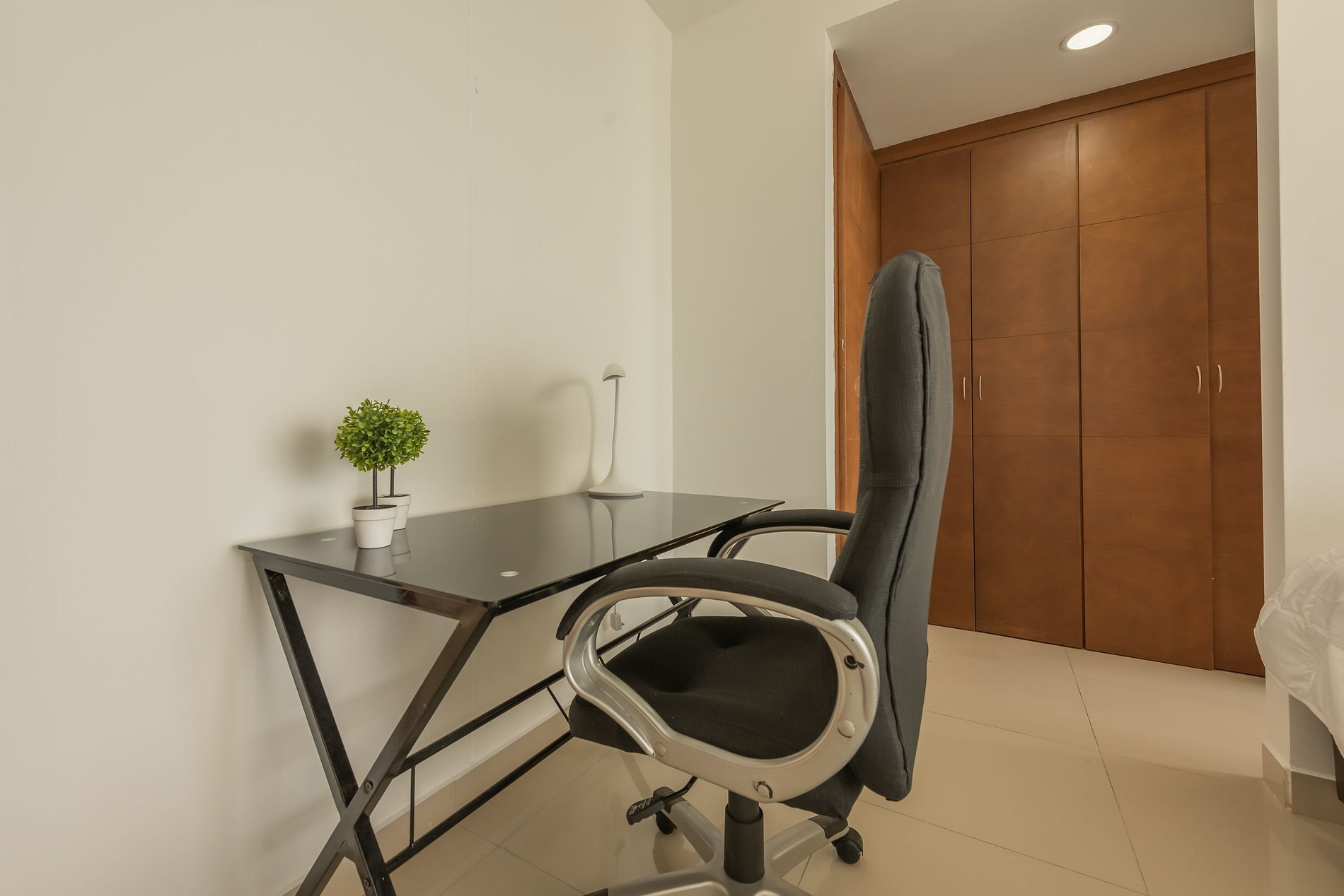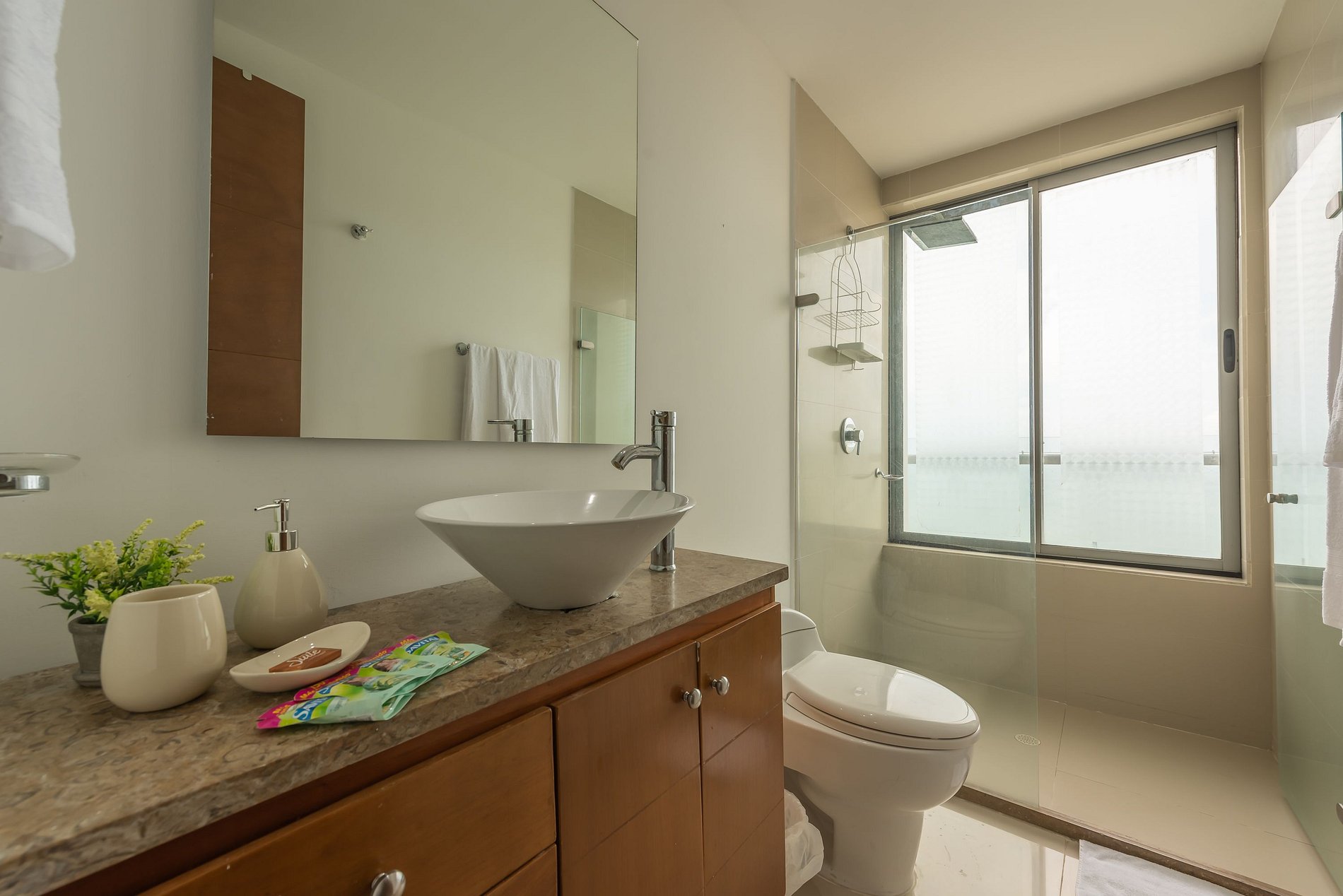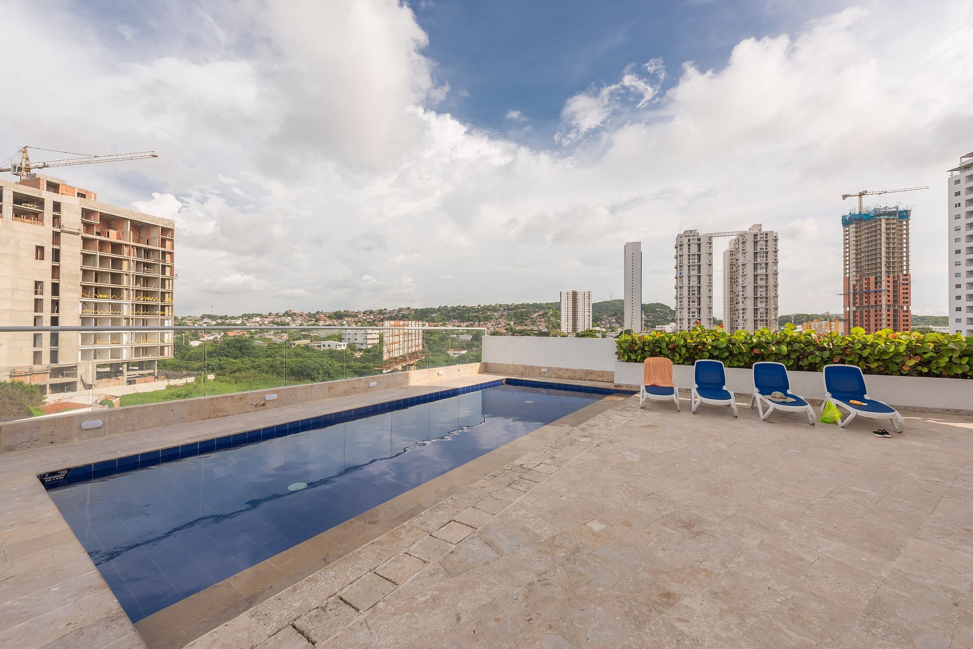 El apartamento tiene una espectacular vista al mar desde la sala, el balcón, el cuarto y el baño principal y se encuentra en un edificio moderno con piscina de adultos y de niños, sauna, turco, jacuzzis, parque de juegos infantiles, zona de asoleadoras, gimnasio y seguridad las 24 hs