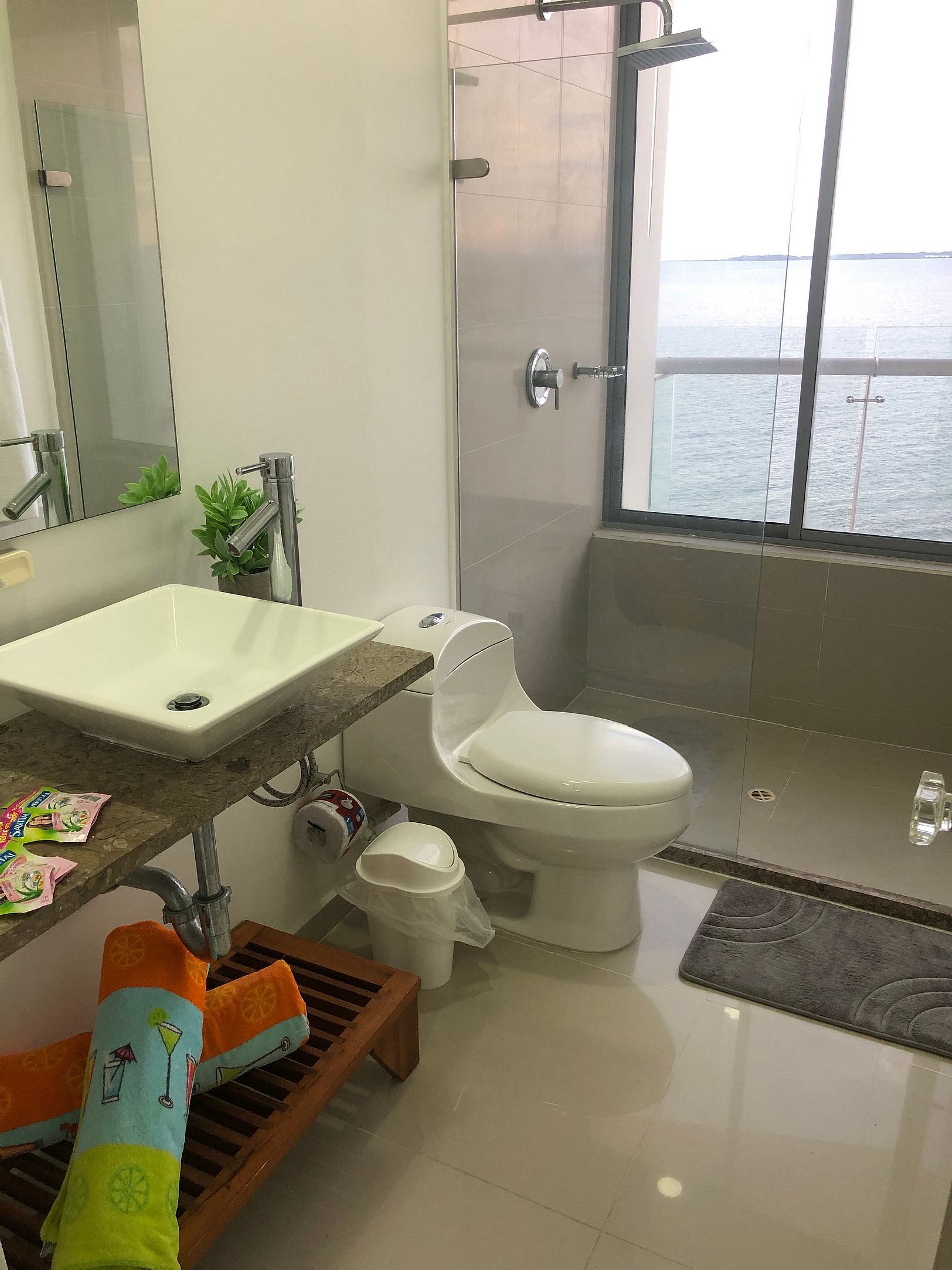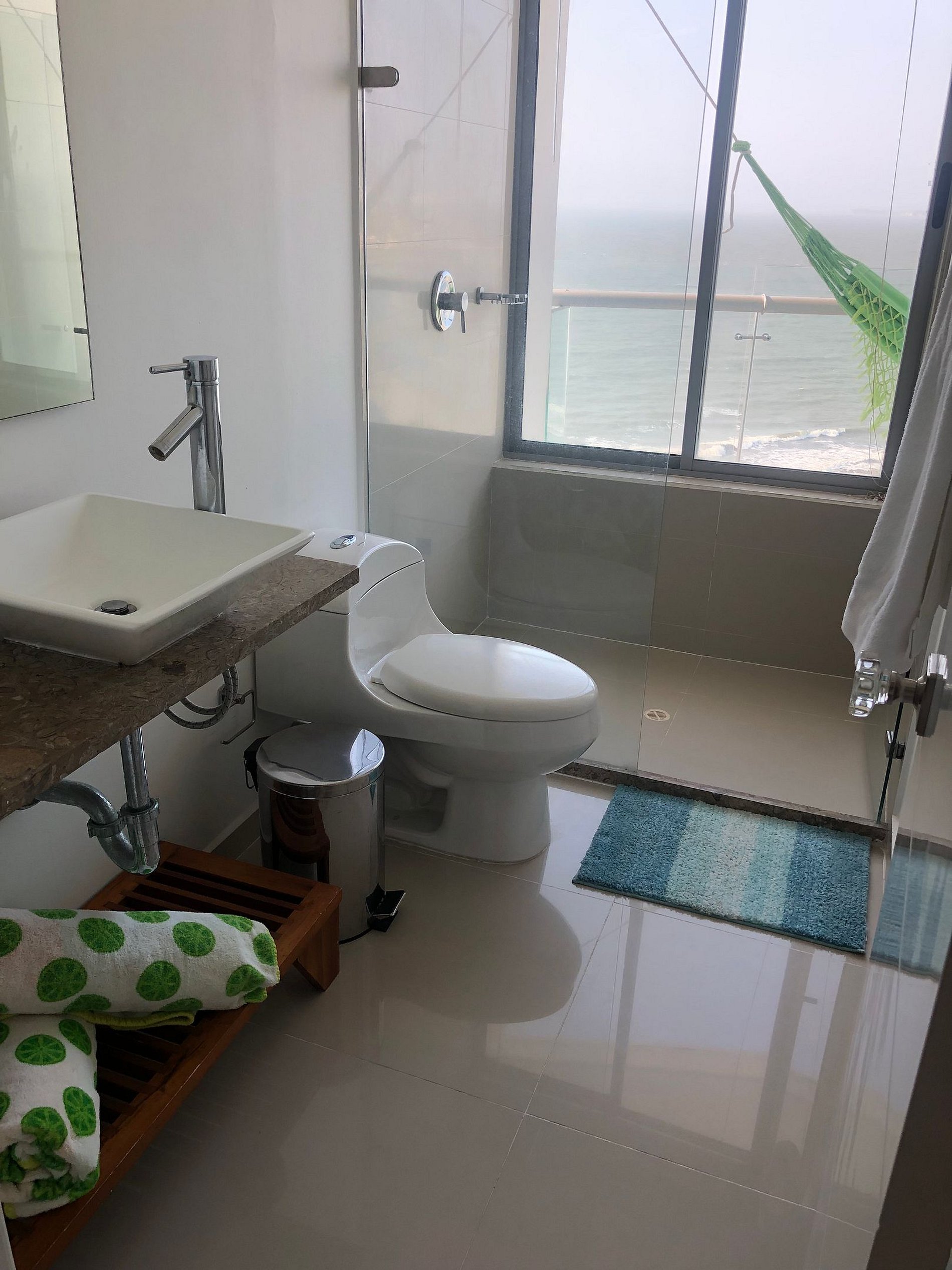 Ambos baños son completos con regadera con agua caliente. El baño principal tiene vista al mar.