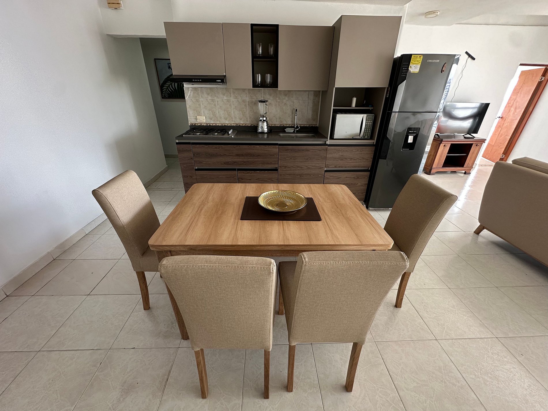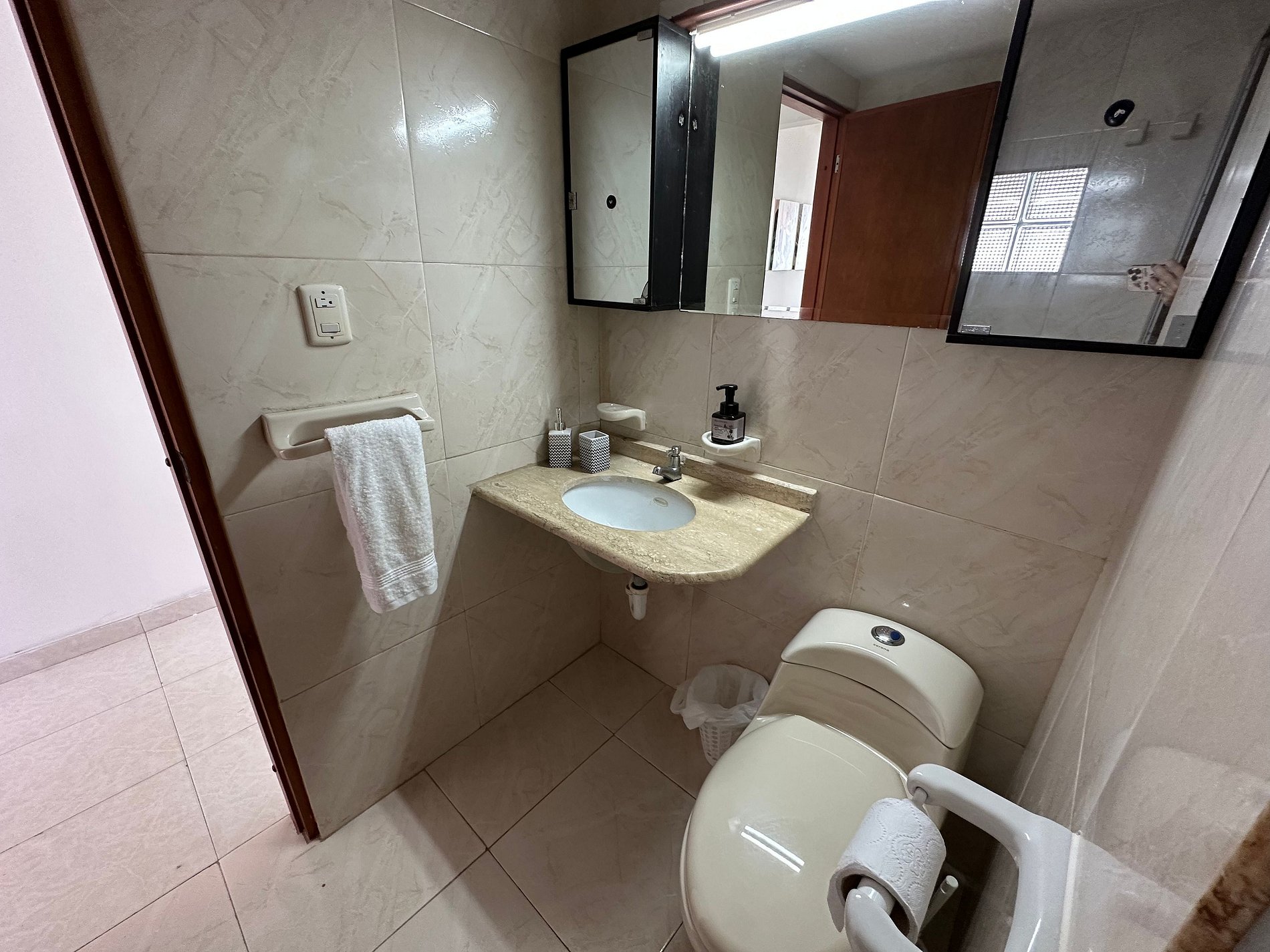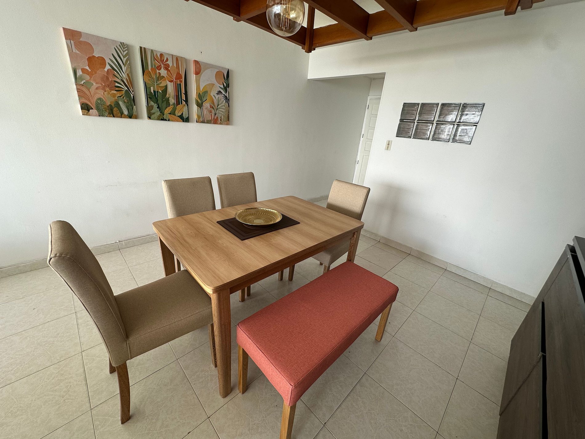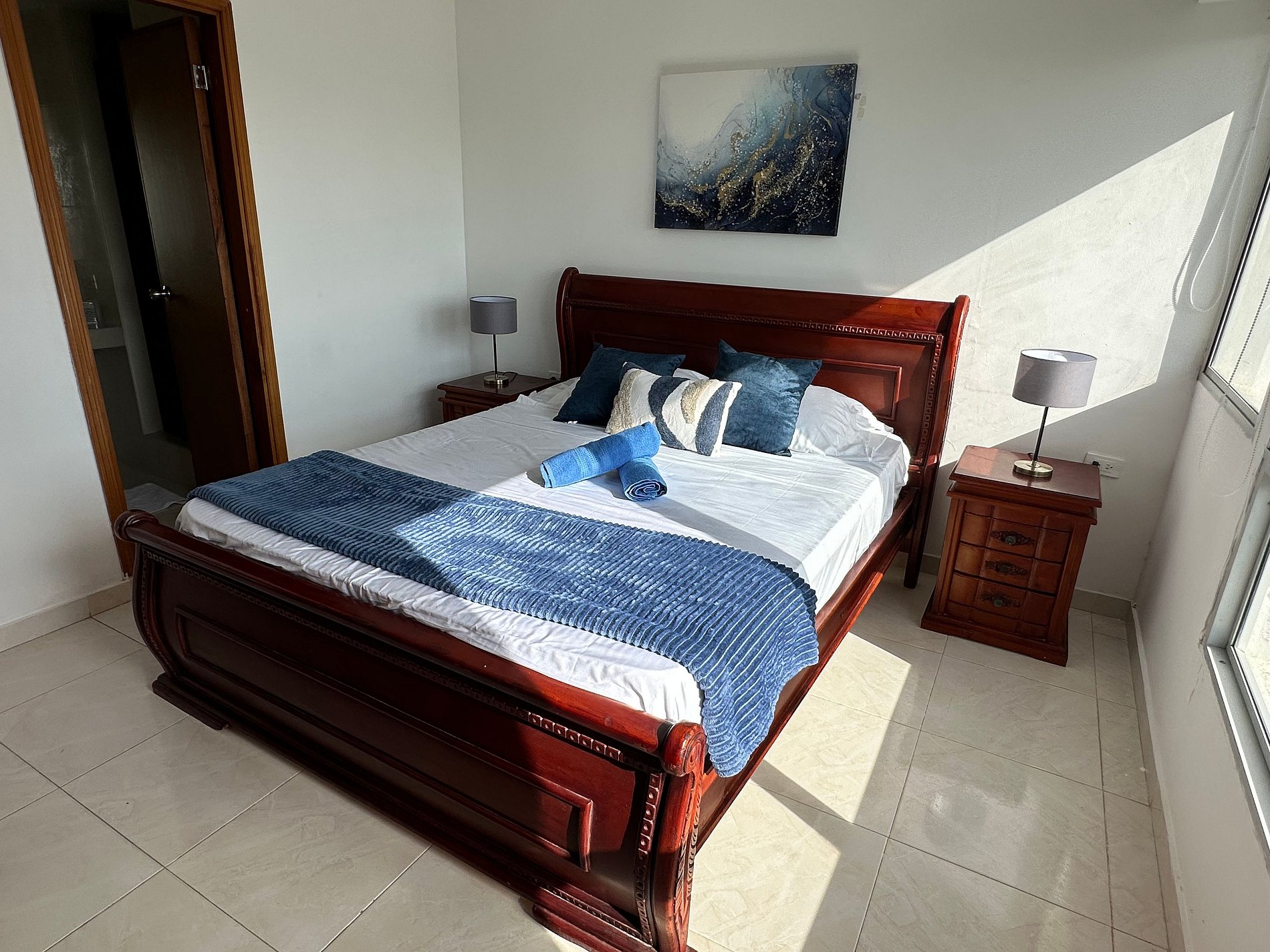 El apartamento tiene 3 alcobas (dos dobles y una sencilla) con aire acondicionado; sala-comedor, cocina, 3 baños completos y balcón. Además tiene internet de alta velocidad, 3 televisores, hamaca en la terraza, etc.