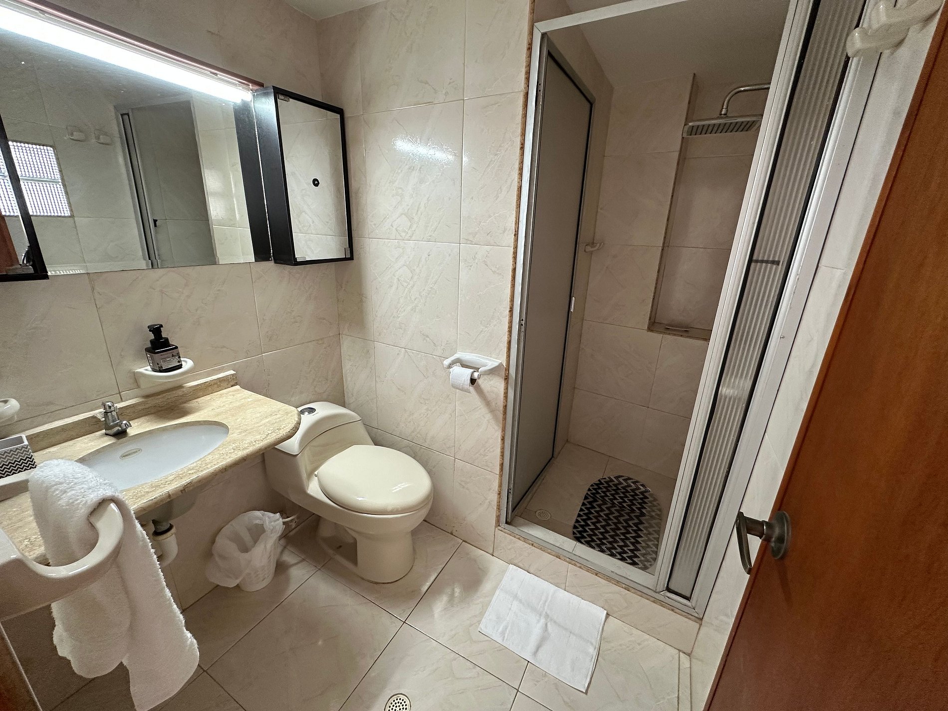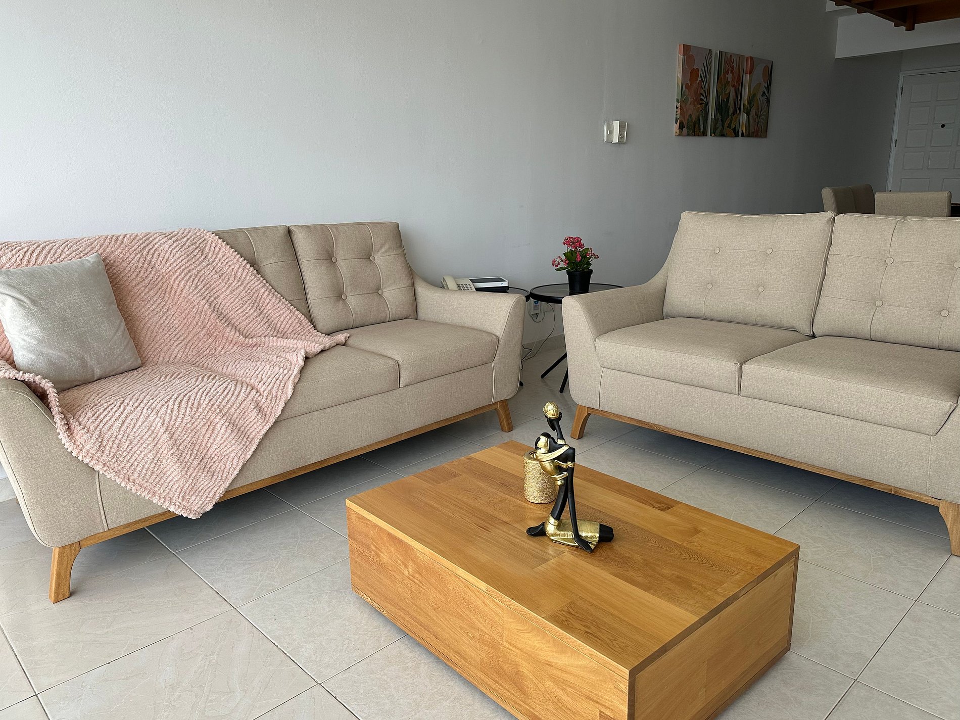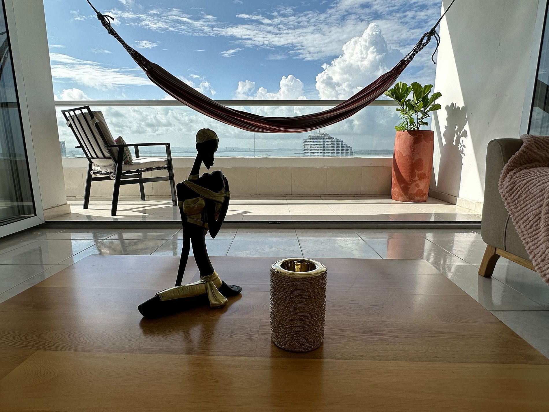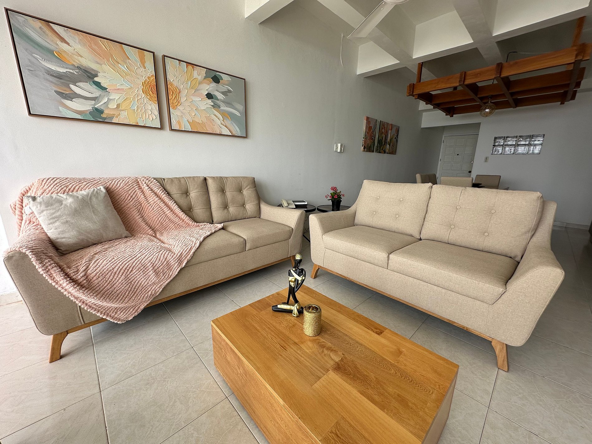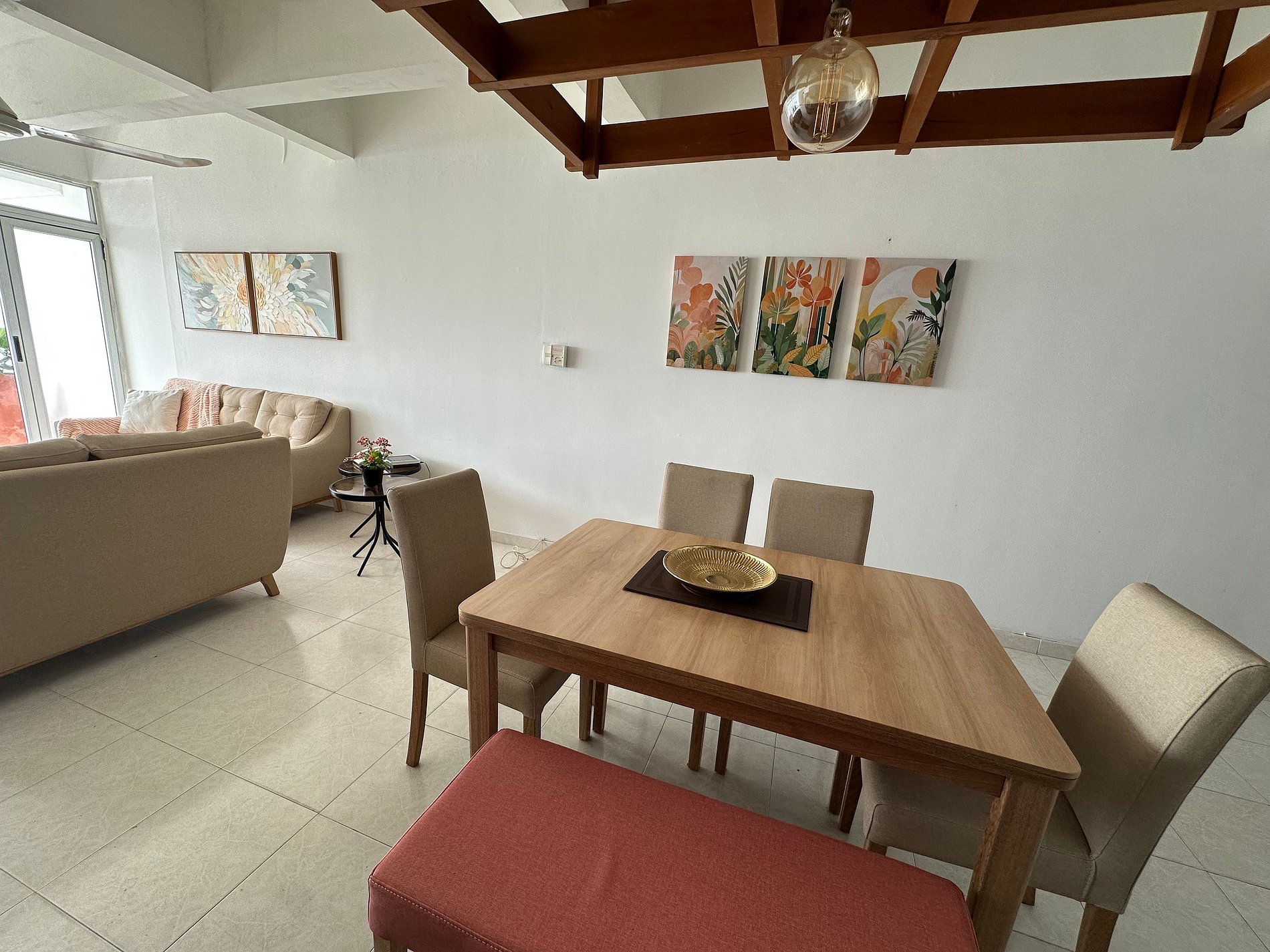 El apartamento tiene 3 alcobas (dos dobles y una sencilla) con aire acondicionado; sala-comedor, cocina, 3 baños completos y balcón. Además tiene internet de alta velocidad, 3 televisores, hamaca en la terraza, etc.