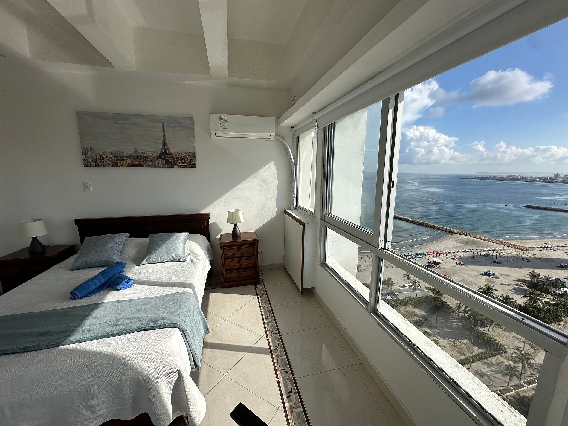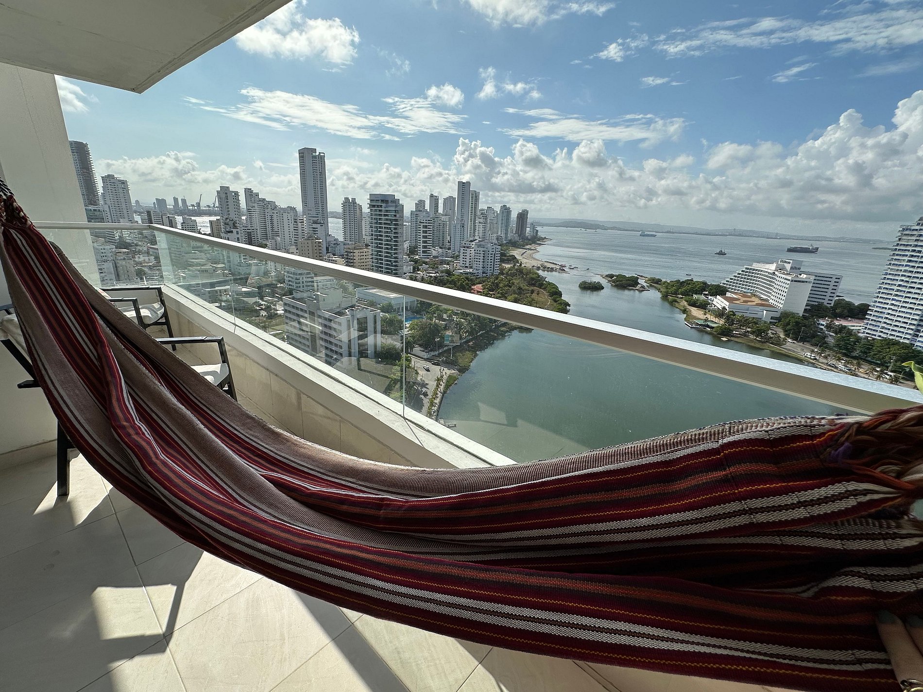 Ubicado en el corazón de Laguito, este amplio apto de 3 alcobas, 3 baños, sala, comedor, cocina y balcón es tu mejor opción p/ estancias largas en la ciudad. Todos los cuartos tienen vistas espectaculares a Laguito, Bocagrande y la playa.